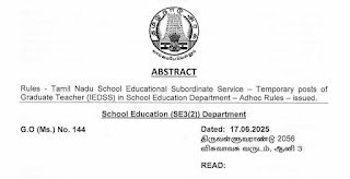 G.O : 144 , dt 17.06.2025 – தற்காலிகமாக நியமிக்கப்படும் ஆசிரியர்கள் கண்டிப்பாக தகுதித் தேர்வில் தேர்ச்சி பெற்றிருக்க வேண்டும் Tamil Nadu School …